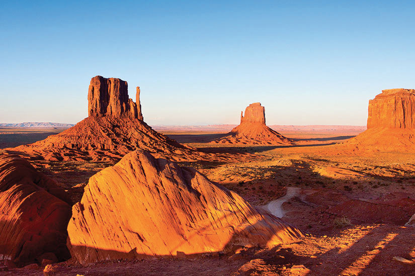 route pour Monument Valley, au coeur du pays Navajo, à la frontière de l'Arizona et de l'Utah. Excursion en 4x4 à la découverte des étranges monolithes rouges, immortalisés par John Ford en 1939 dans le film "La Chevauchée Fantastique", avec John Wayne à l'affiche, ce qui a permis à l'époque de faire découvrir le site à un large public. Depuis, ce sont plusieurs générations de voyageurs qui se sont succédées dans ce lieu sacré, devenu le symbole du western américain. Repas de spécialités navajos au coeur de Monument Valley. L'après-midi, retour en Arizona et route jusqu'à Page, dans la région du lac Powell. Découverte du Horseshoe Bend, l'impressionnant méandre du Colorado qui s'écoule 340 mètres en contrebas. Possibilité de survol du lac Powell en avion (en supplément, à réserver et à régler sur place) pour découvrir ses rives, aux teintes ocre et rouge. Dîner Western nuit.