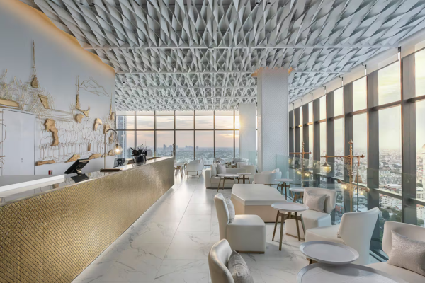 - Rooftop avec piscine et bar offrant une vue spectaculaire sur la ville